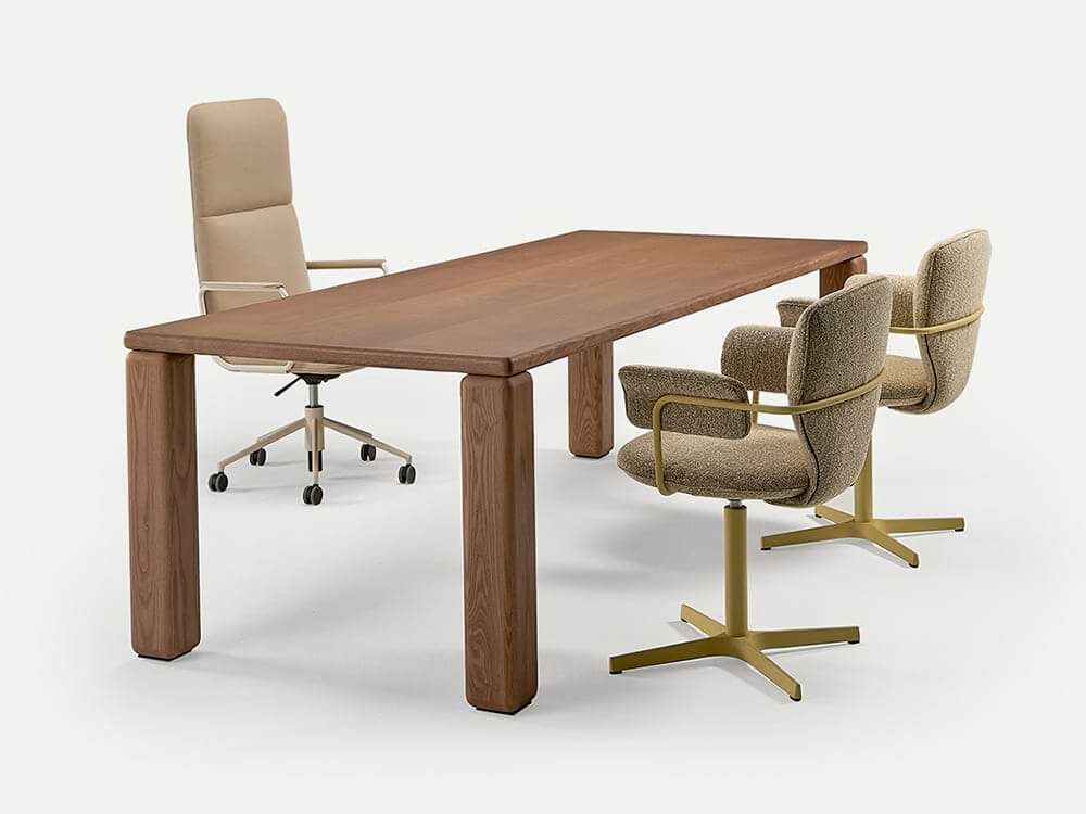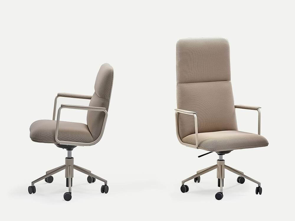 Elle by Rafa García for Sancal combines comfort and style, perfect for home or workspaces. With two backrest heights, adjustable swivel and five-star bases, and upholstered armrests, it is versatile, elegant, and practical.