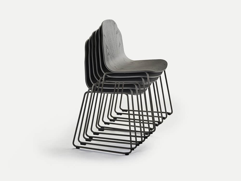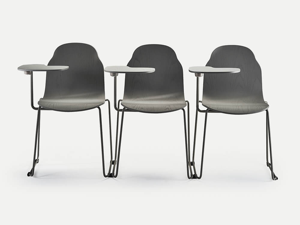 Body is a design by Sylvain Willenz for Sancal, inspired by the natural silhouette of the human body. Crafted in ash wood with smooth, organic lines, it is available non-upholstered or with a removable padded cover in a wide selection of fabrics and colours. Multiple leg options, including a stackable lacquered metal sled, make it highly versatile for offices, auditoriums, and other interior spaces. Optional features include a writing tablet and metal arms, enhancing functionality for modern work and learning environments.