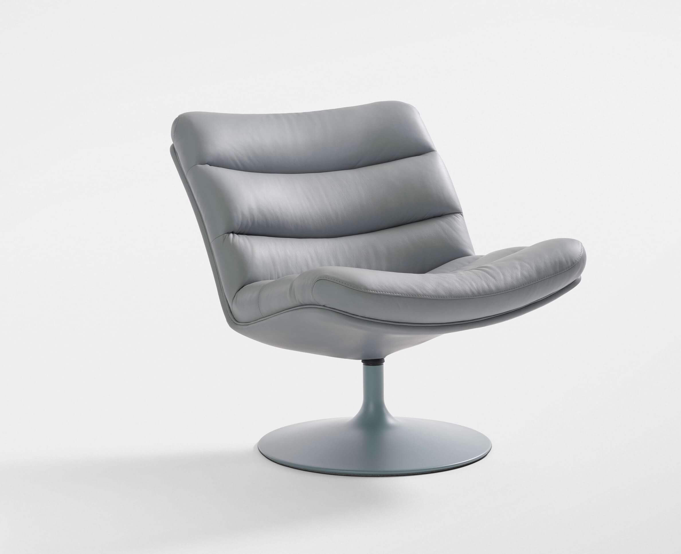 Originally created during the modernist movement, the F506 armchair, designed by Geoffrey D. Harcourt RDI for Artifort, combines flowing curves and clean lines to deliver a generous, ergonomic seating experience. With its sculptural shell, swivel base, and distinctive horizontal channeling, it offers both comfort and visual impact.
