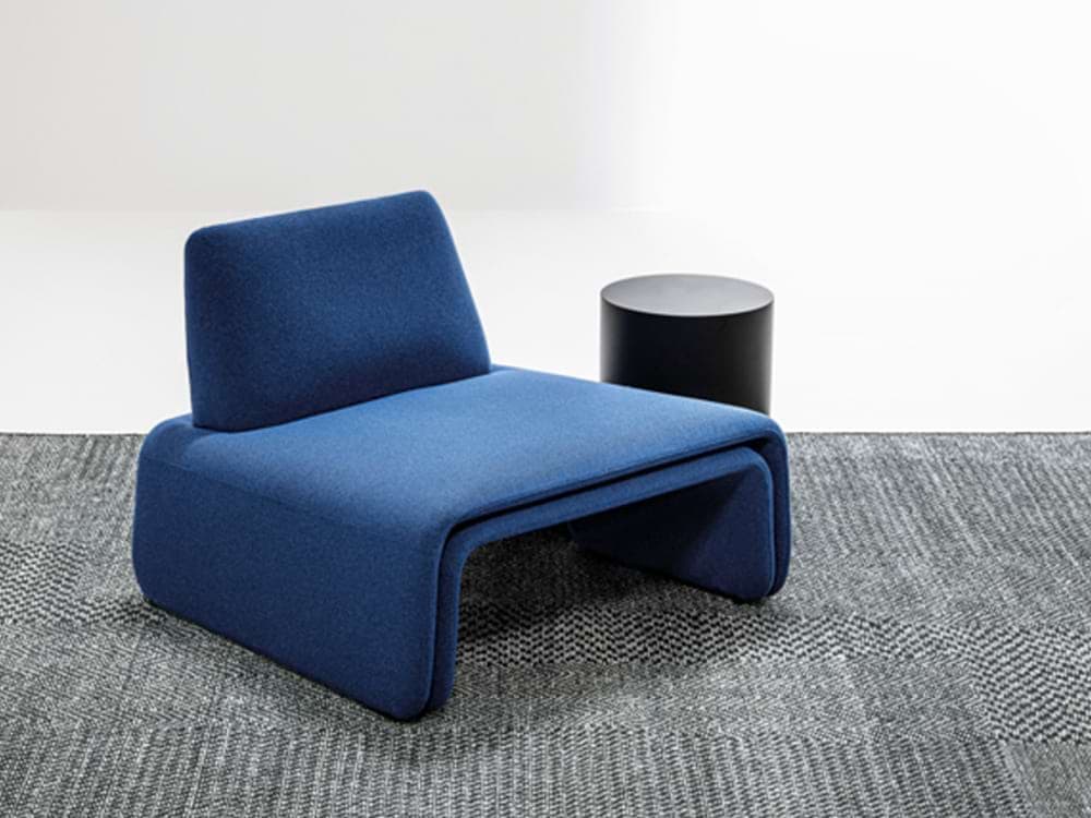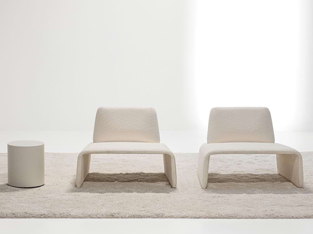 FourFolds is both essential and comfortable, its curved tubular frame creating an interplay of surfaces and angles.The same technique is used to create a pouf that can be hidden under the seat or used as a footrest or additional seat. This makes the armchair even more original and multifunctional.