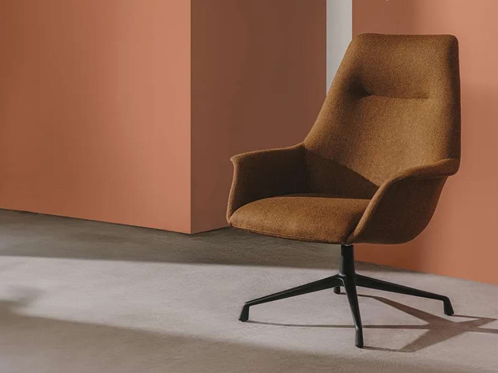 The Gala lounge chair is a flexible collection, fully upholstered, with great customization possibilities thanks to a comprehensive catalog of fabrics and its different bases available in wood or aluminum. The strong and archetypal features of the silhouette are reminiscent of contemporary classics, making it highly adaptable for work and meeting spaces or in the private sphere of the home.