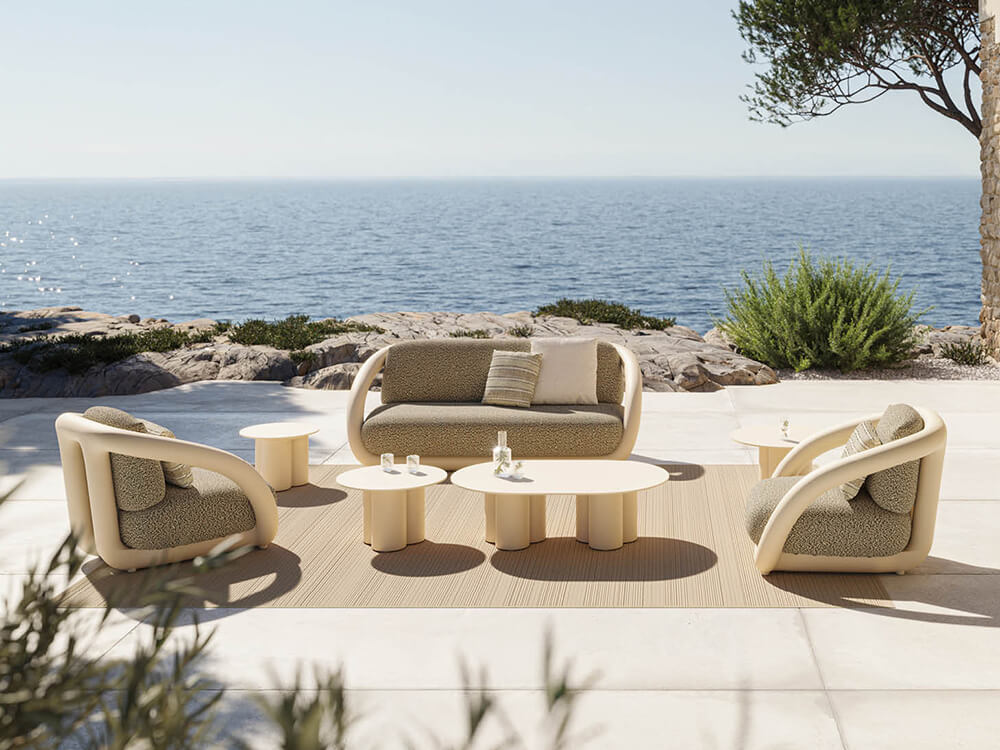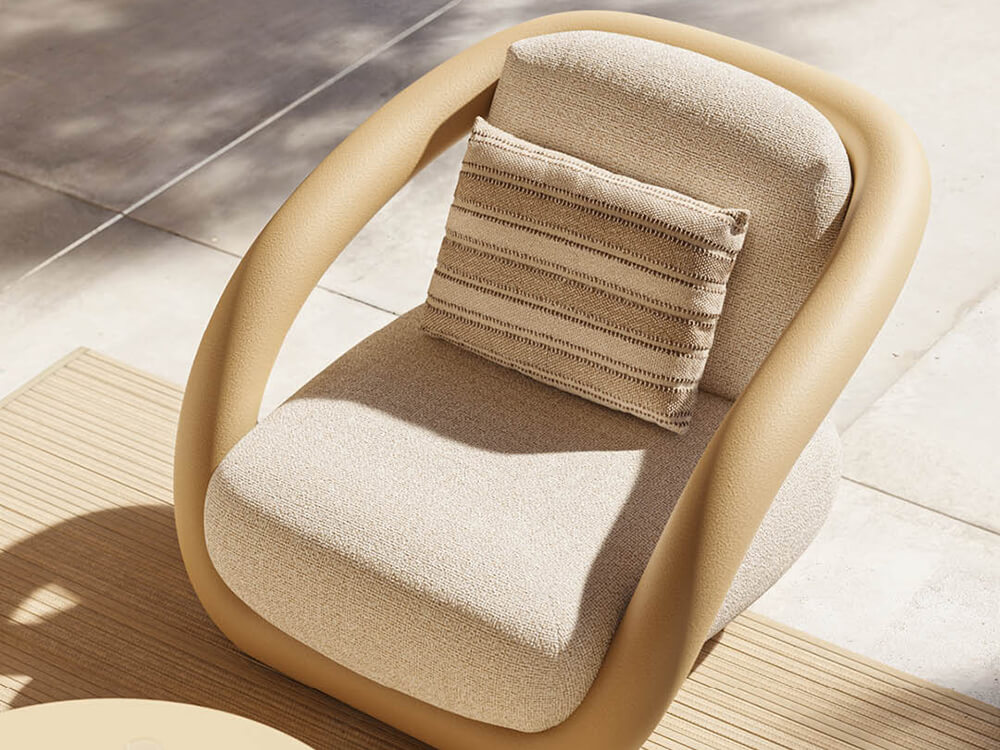 Upholstery plays a key role, adding texture, warmth, and exceptional comfort that enhances the sense of quality and makes Mel an inviting addition to any outdoor space.