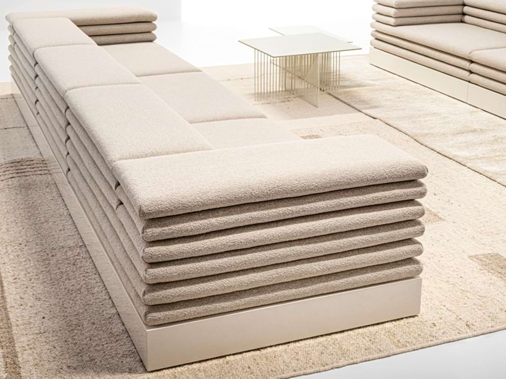 Introduced at Milan Design Week 2025, Acamante is a sofa you can arrange many ways, straight, corner, or island. It has soft cushions on a strong base, with sides that can also be used as small tables.