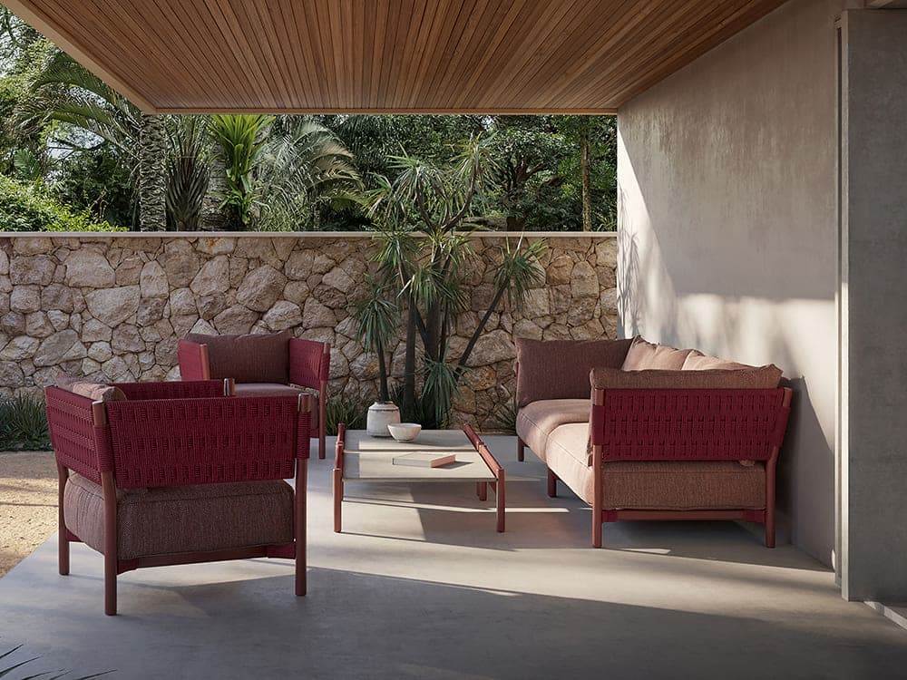 technologies in cord craftsmanship and aluminum work. The tables combine these with durable and expressive materials for the tops.