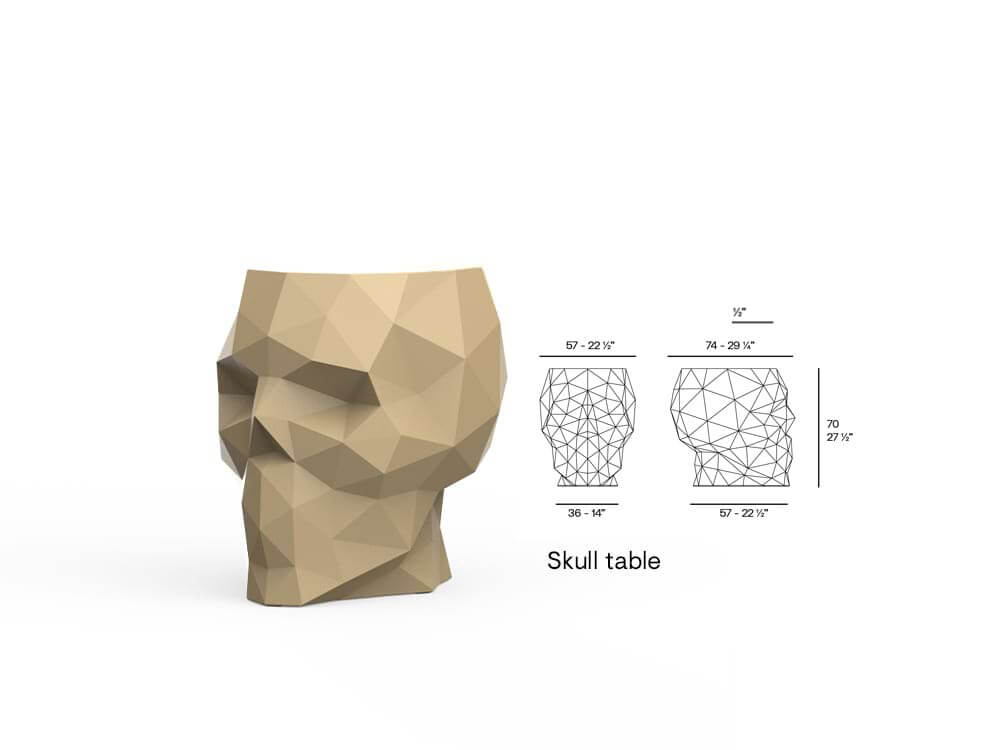 The collection includes skull-shaped planters, a table, and stools. Each piece is made to stand out and give any space a modern touch.